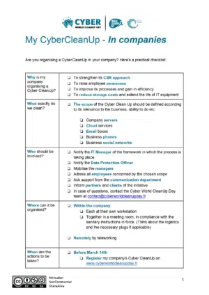 Are you organising a Cyber CleanUp in your company ? This sheet is for you !