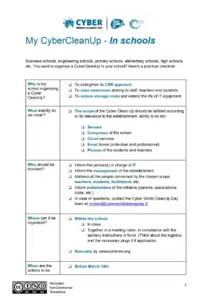 Are you organising a Cyber CleanUp in your school ? This sheet is for you !