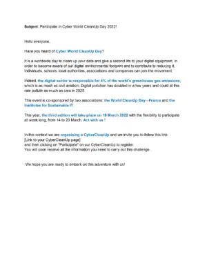plates to accompany you, depending on whether you are organising a Cyber CleanUp in a company, in your association, in a school, in a community or simply as an individual.